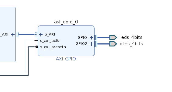 You will need to know two things. If you followed the instructions in practical 1 carefully, the LEDs are on channel 1 of the GPIO core, the Buttons are on Channel 2. We can check this in Vivado: