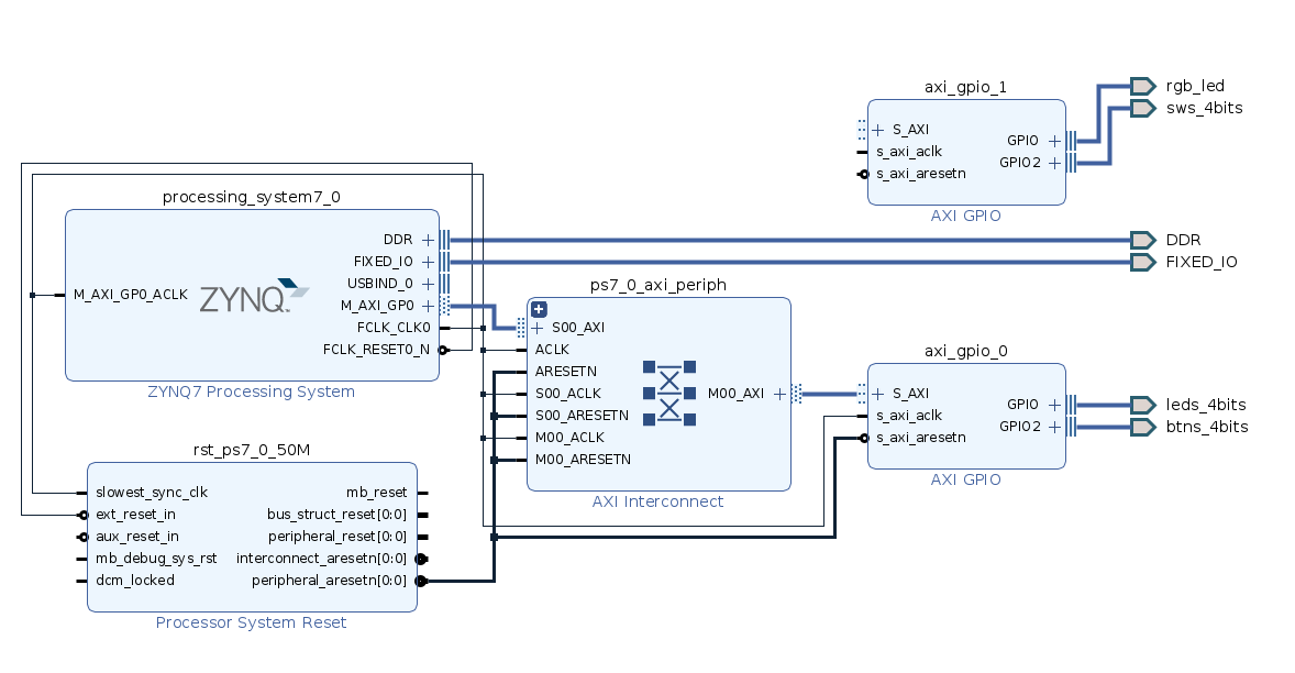 Recall that in our Vivado hardware design we added a GPIO controller to connect to buttons and LEDs. Let’s now write code to use it. Xilinx helpfully provide code examples for all the “blocks” that appear in Vivado so instead of starting from scratch let’s see how to use those.